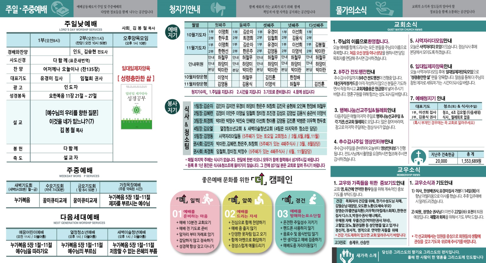 | 다음글 | 2025.10.12 주일주보 | 김봉철 | 2025.10.12 | 0 | 188 |