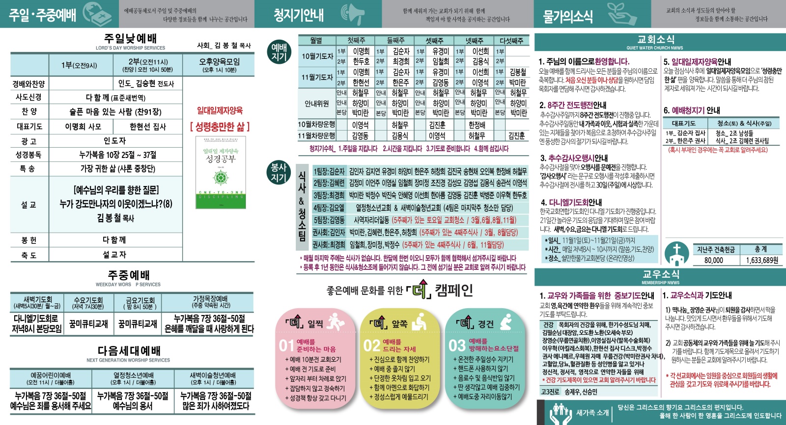 | 이전글 | 2025.11.09 주일주보 | 김봉철 | 2025.11.09 | 0 | 106 |