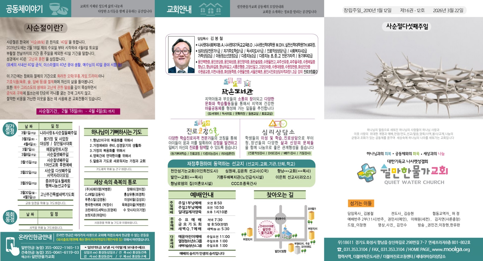 | 다음글 | 2026.3.15주일주보(사순절넷째주일) | 김봉철 | 2026.03.14 | 0 | 41 |