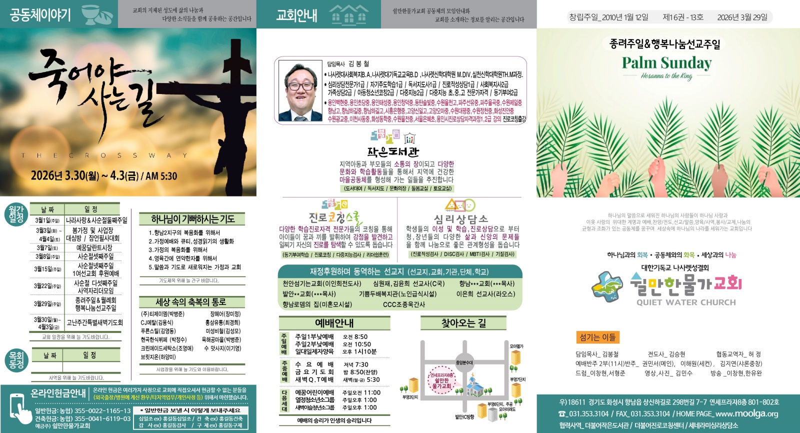 2026.3.29주일주보(종려주일) 김봉철 2026-03-28 추천 0 댓글 0 조회 63 http://quietwater.onmam.com/bbs/bbsView/47/6620392 첨부파일 (0) 0